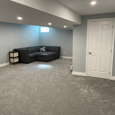 This once dark and cluttered basement was transformed into a bright, functional living space. We added improved lighting throughout. The renovation included new flooring, fresh drywall installation, and strategic storage solutions to maximize space efficiency. Our team also upgraded the electrical system and added proper ventilation to ensure a comfortable, dry environment for years to come.